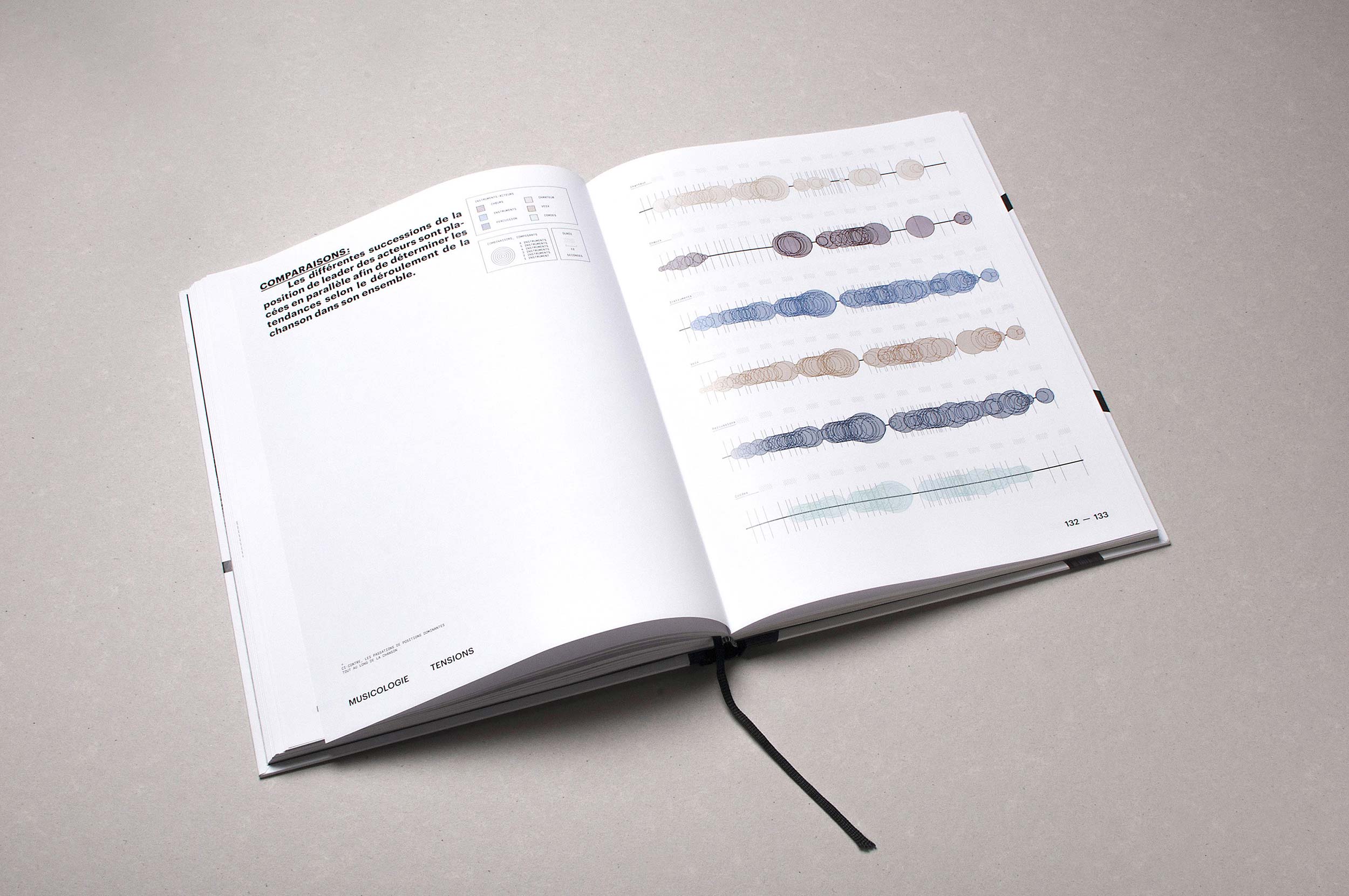 Les analyses s’intéressent tout d’abord à la chanson dans sa globalité, puis au fil des pages, porteront sur des parties de plus en plus précises. Les illustrations aussi sont réalisées avec un disque de vinyle découpé dans un premier temps selon les couplets, puis selon les vers, et enfin selon les mots. Dans un deuxième temps, un morceau de disque sera reproduit à très grande échelle à l’aide d’un microscope à électrons.