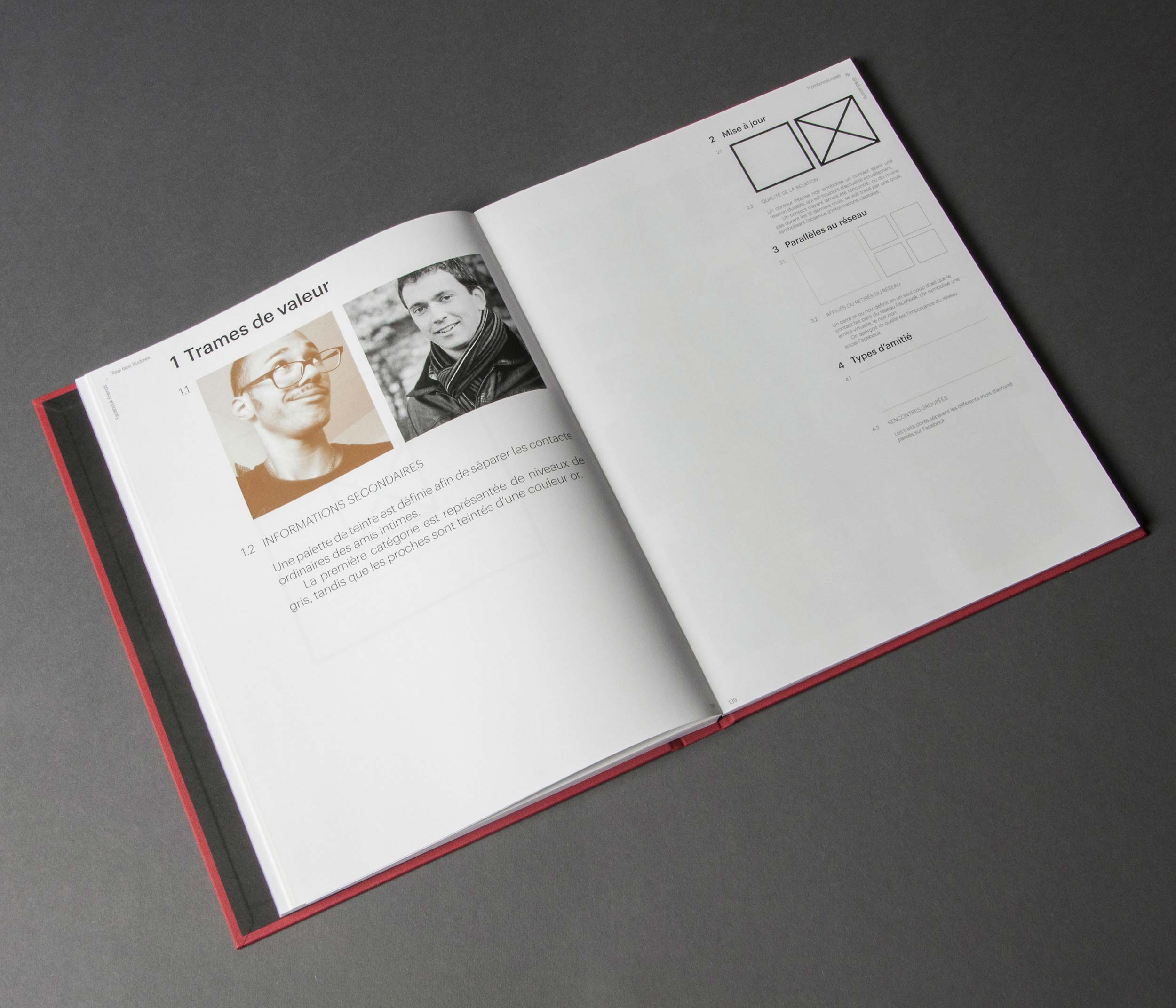 Etudes comparatives démontrant l’importance du réseau social Facebook dans les relations humaines. Celles-ci confrontent 250 profils virtuels à 3 amis proches en les opposant, les additionnant et les soustrayant. Pour ce faire, des illustrations tirées d’archives, de photos de classes, de cartographies ou encore de trombinoscopes ont été imaginées.